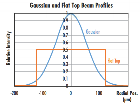 Figure 1: Comparison of Gaussian and flat top beam profiles with the same optical power2