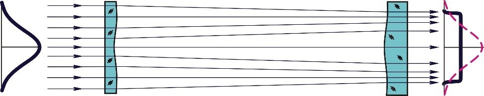 Figure 4: Refractive shaping of an incident Gaussian beam to a flat top profile using an AdlOptica πShaper Flat Top Beam Shaper3