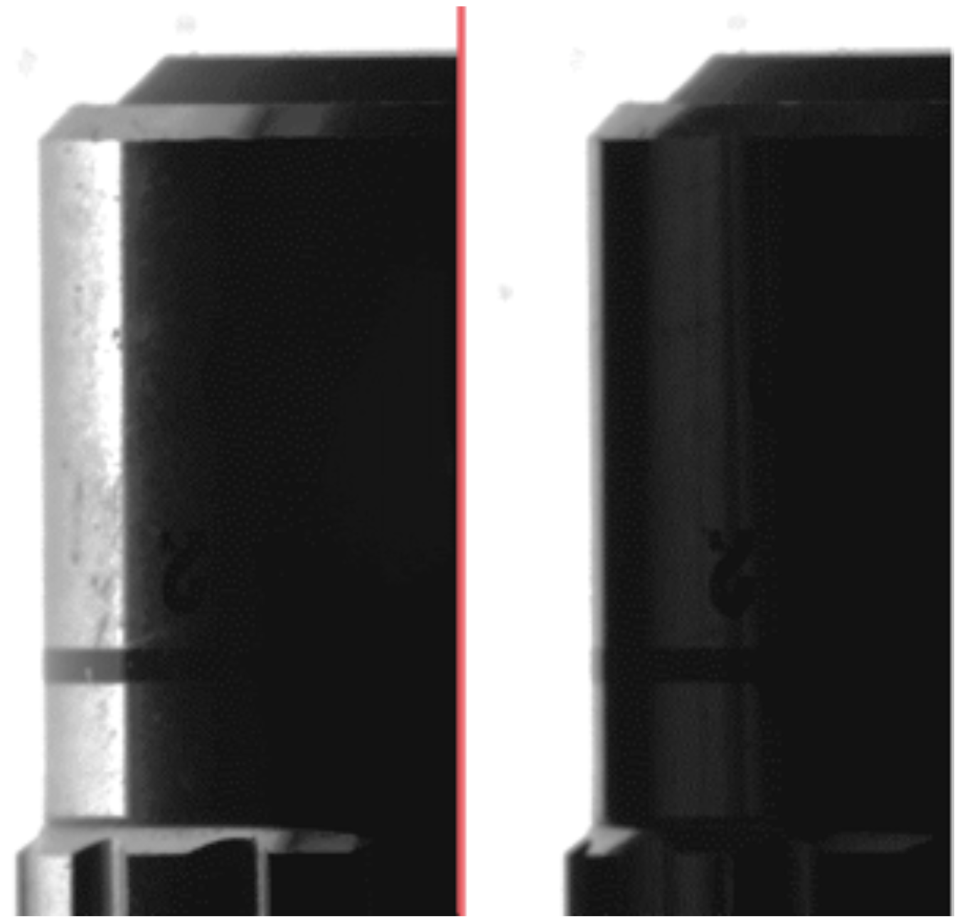 Figure 8: Edges of objective using conventional backlight (left) and masked backlighting (right)