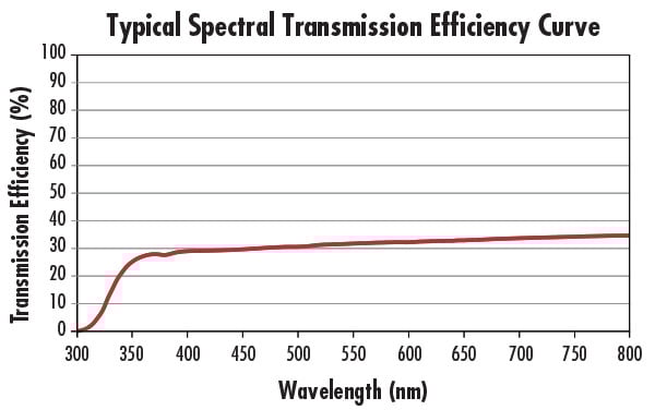 ![]() Ground glass diffusers are optical windows that are sandblasted to produce a rough surface that will scatter light. Edmund Optics uses a 120-grit or 220-grit sandblast specification for this series. The finer the grain (higher number) the better the transmission efficiency. However a coarser grain will allow for a wider diffusion pattern. Undergoing two orthogonal passes during this sandblast process yields an even diffusion across the surface. The scattering is a compromise of low scatter loss and medium diffusion. Typical applications include use in screens, illuminator diffusion, and targets. View Product Substrate Transmission |